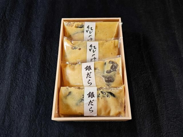 内容量 : 紅鮭の西京漬け2枚、銀ダラの西京漬け2枚